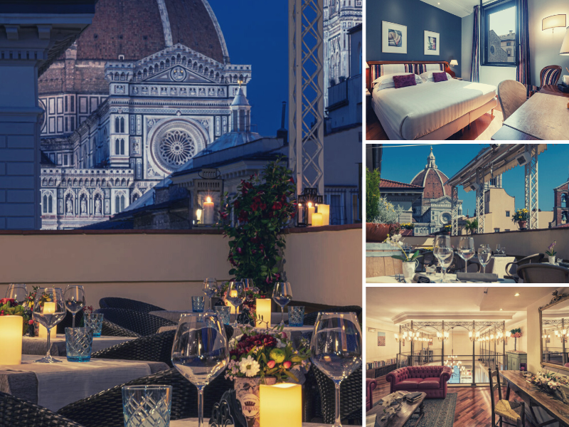 Some rooms provide stunning views of the Arno River and Ponte Vecchio. But for the ultimate exclusive experience, the Queen Suite comes with its own terrace, offering one of the most breath-taking views of Florence. And on the 6th floor, the terrace offers an awe-inspiring view (see image) that will leave you speechless... whether you enjoy it during breakfast or while dining at night in the restaurant.