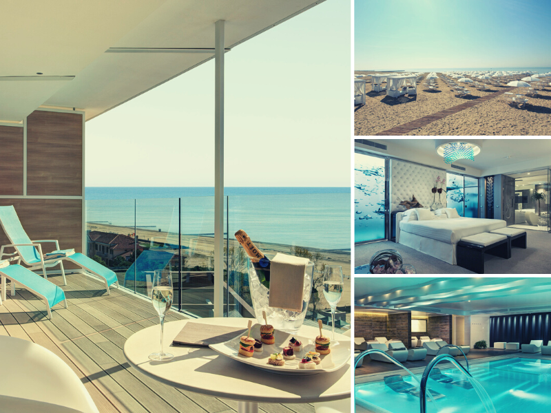 What could be more romantic than a luxury beach getaway just minutes away from one of the most romantic cities in the world: Venice. Visit famous sights including St. Mark's basilica, take a romantic gondola ride through a maze of emerald canals and discover the secret beaches of Venice. Aqua and Aria Penthouse Suites are definitely the most romantic rooms of the resort, both featuring a private Jacuzzi and a private wine cellar.