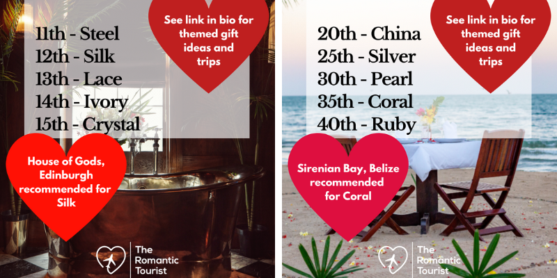 A perfect way to celebrate this extra-special milestone is to revisit your Honeymoon destination and whether you choose to stay in the same room in the same hotel, or upgrade to a more luxurious experience if your original trip was on a budget, the memories are guaranteed to be mind-blowingly romantic.