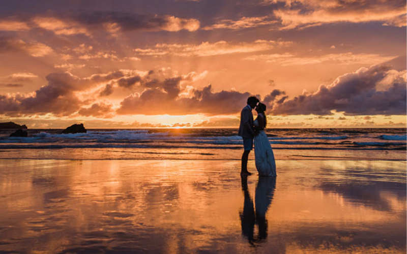 A sunset beach wedding is a dream come true for couples who want to tie the knot in stunning style.